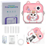 Aparat z drukarką termiczną 3 rolki kotek różowy
