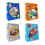 Torebka prezentowa dziecięca L brokat pojazdy mix