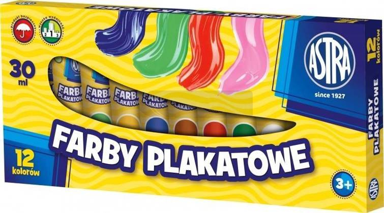 Farby plakatowe w tubach 12 kolorów 30ml ASTRA