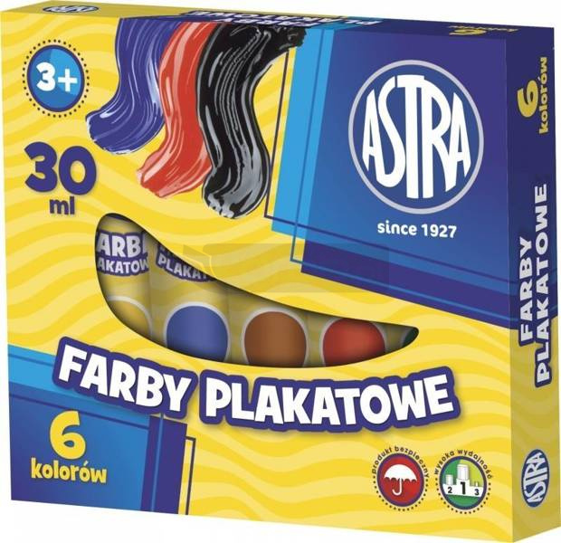 Farby plakatowe w tubach 6 kolorów 30ml ASTRA