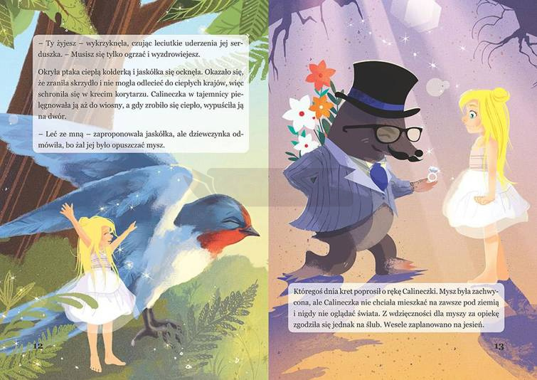 Tytułowa bohaterka to malutka dziewczynka, która przeżywa wiele przygód i spotyka na swojej drodze wiele niekoniecznie życzliwych stworzeń. Ropuchy, chrabąszcze, motyl, mysz, kret... Los dziewczynki odmienia się dopiero, gdy poznaje jaskółkę i ratuje ją przed niechybną śmiercią. Jeśli chcesz wiedzieć, co się wtedy stało, w tej książeczce znajdziesz odpowiedź!