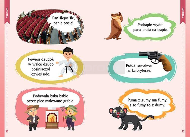 Te łamańce językowe są idealne do ćwiczenia prawidłowej dykcji i dbałości językowej. Zabawy tego typu są polecane przez wychowawców i logopedów. Książeczka zawiera skalę trudności, która pozwala na sprawdzenie swoich umiejętności oraz na rywalizację, kto jest prawdziwym mistrzem języka!