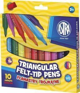 Wysokiej jakości flamastry produkowane są według najlepszych norm jakościowych. Dobra jakość tuszu oraz żywe kolory zapewniają dzieciom długie godziny zabawy. Flamastry Astra posiadają bezpieczną wentylowaną skuwkę, intensywne kolory, zabezpieczenie przed wciśnięciem końcówki, ergonomiczny kształt.