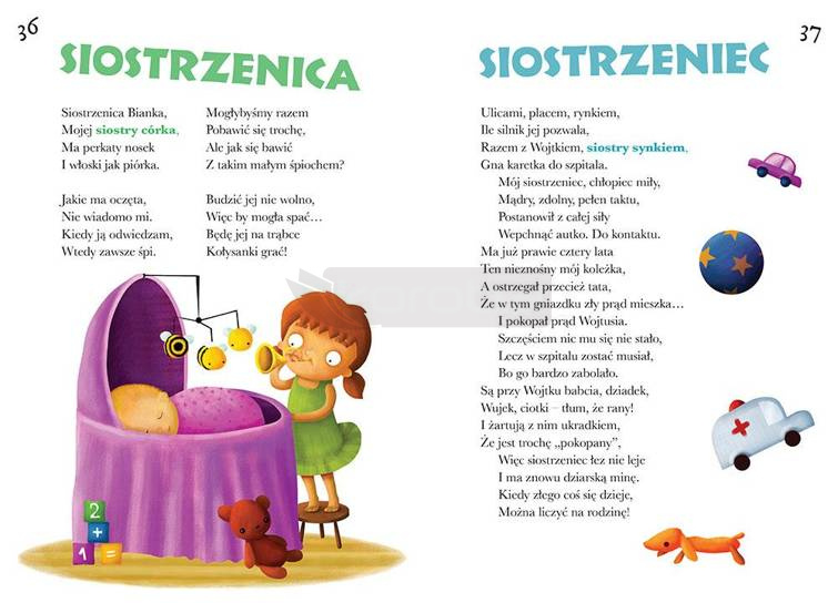 Wszystko na wesoło i ciekawie. Wierszyki są krótkie, proste i adekwatne dla dzieci już na etapie wieku przedszkolnego. Dodatkowym atutem lektury uprzyjemniającym wędrówkę przez zawiłe relacje rodzinne są kolorowe, i równie wesołe jak tekst, proste ilustracje (...) Zbiorek był dla mnie ciekawym odkryciem i bardzo miło mnie zaskoczył. Dzieci chętnie wysłuchały wszystkich wierszyków. Niektóre czytaliśmy po kilka razy. Było przy tym dużo śmiechu, ale i pytań, bo maluchy koniecznie chciały odnieść ich treść do naszej rodziny. W ruch poszedł również stary rodzinny album ze zdjęciami. Przygoda z taką lekturą była więc dla nas naprawdę niezwykła i w sumie nadal trwa ;) Gorąco polecam wam tę książeczkę.