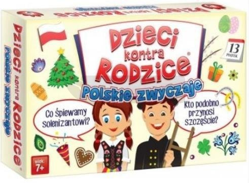 Czy podkowa przynosi szczęście? Co śpiewamy solenizantowi? Co robimy w Prima Aprilis? Dzieci Kontra Rodzice: Polskie Zwyczaje to dynamiczna gra rodzinna, w której dzieci i rodzice rywalizują odpowiadając na wiele interesujących i zabawnych pytań. Wygrywa drużyna, która odpowie na więcej pytań. W grze znajdziecie pytania o dwóch poziomach trudności, specjalnie przygotowane dla dzieci i dla rodziców.