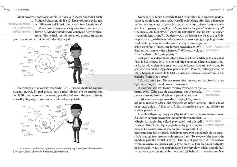 Wydanie Małego Księcia kompletne bez skrótów i cięć w treści. W tym wydaniu znajdziesz odpowiedzi na pytania z podręcznika - pewniak na teście, czyli wskazanie zagadnień, które zwykle pojawiają się w pytaniach z danej lektury we wszelkich testach sprawdzających wiedzę, a także w podręcznikach i na klasówkach. Zawiera bardzo szczegółowe streszczenie oraz drugie skrócone, ułatwiające szybkie przygotowanie się przed lekcją. Opracowanie zawiera plan wydarzeń, wnikliwie wyjaśnioną problematykę oraz szerokie charakterystyki bohaterów.