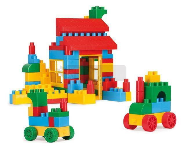 Klocki dla chłopców w niebieskim pojemniku, zestaw zawiera 132 elementy