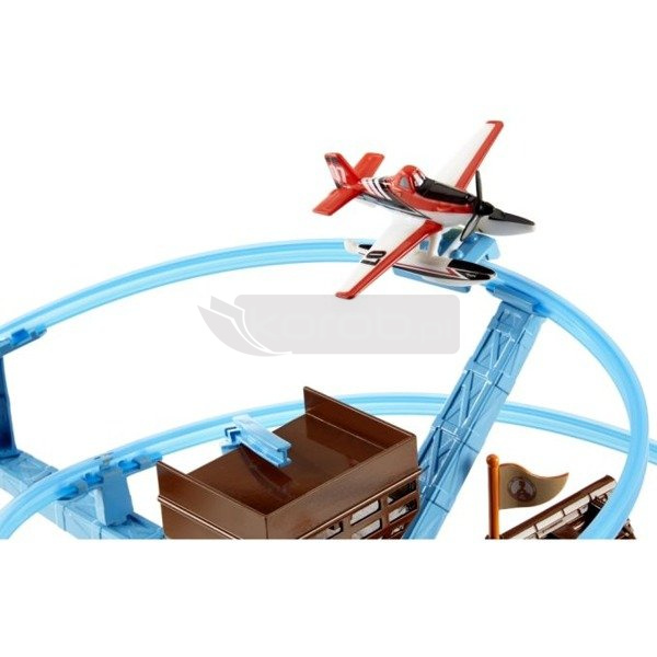 „Leć” na ratunek z nieustraszonym Dustym! Z tym ekscytującym zestawem dzieci mogą odtwarzać epicką scenę z filmu Disneya „Samoloty 2”, w której Dusty ratuje gości uwięzionych w Kadłubacówce. Za pomocą wyrzutni wystrzel Dusty’ego na „lot” wokół toru, by ugasił pożar! Na górze budynku znajduje się punkt obserwacyjny. Tu Dusty może odpoczywać między misjami ratunkowymi i sprawdzać, kto potrzebuje jego pomocy. „Lataj” wokół Kadłubacówki, aż Dusty ugasi wszystkie płomienie i uwolni gości! Wyrzutnię można przyłączać do zestawu Trening ataków z powietrza oraz Akcja ratunkowa w lesie. Sprzedawane oddzielnie.