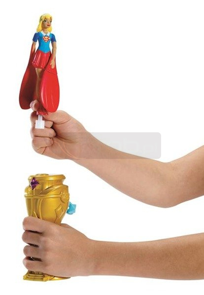 Obudź w sobie superbohaterkę i poszybuj w powietrze z tą figurką i wyrzutnią DC Super Hero! Zamontuj figurkę w poręcznej wyrzutni, pociągnij za sznurek i patrz, jak Supergirl wzlatuje w powietrze! Wystrzelona figurka wiruje z zawrotną prędkością, zupełnie jak w animowanej serii DC Super Hero Girls! Ubrana w swój rozpoznawalny kostium superbohaterki mknie na kolejną misję niezwykle efektownie. Z bohaterkami DC Super Hero szkolne obowiązki stają się wielką przygodą! Opakowanie zawiera figurkę Supergirl wraz ze złotą wyrzutnią.