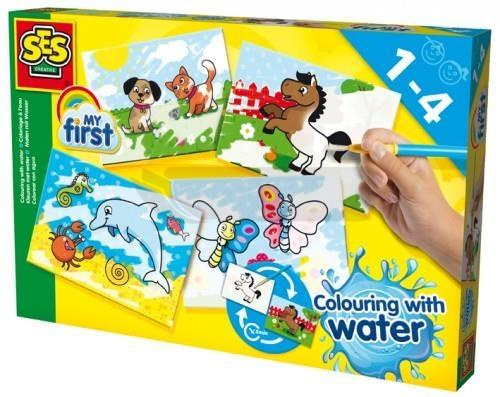 Magia z wodą i farbą - bez bałaganu! Z tym konkretnym zestawem SES jest to możliwe. Maluj mokrym pędzelkiem na szablonie, a zobaczysz jakie kolory ożywają. Pędzelek zrobiony jest z bezpiecznego włosia. Obrazki służą do wielokrotnego użytku. Zaraz po wyschnięciu możesz bawić się na nowo. Produkt zawiera: Pędzelek, 4 szablony Cechy produktu: Zabawa bez chlapania farbą