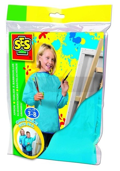Fartuszek ochronny do wszelkich prac plastycznych, uniwersalny rozmiar, rękawy zabezpieczone gumkami. Wykonany z łatwo spieralnej tkaniny. Dla dzieci w wieku 3-8 lat. Nie zawiera PVC. Wyprodukowano w Holandii.