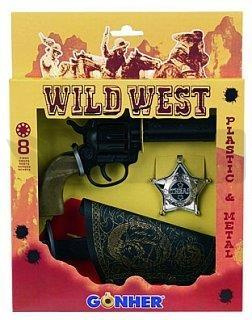 Zestaw kowbojski rewolwer z kaburą i odznaką