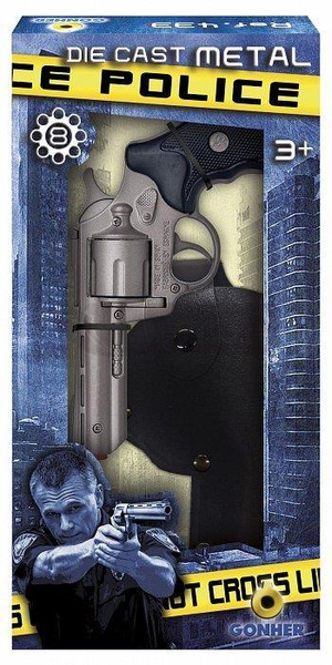 Policyjny rewolwer metalowy na 8 naboi z kaburą.
