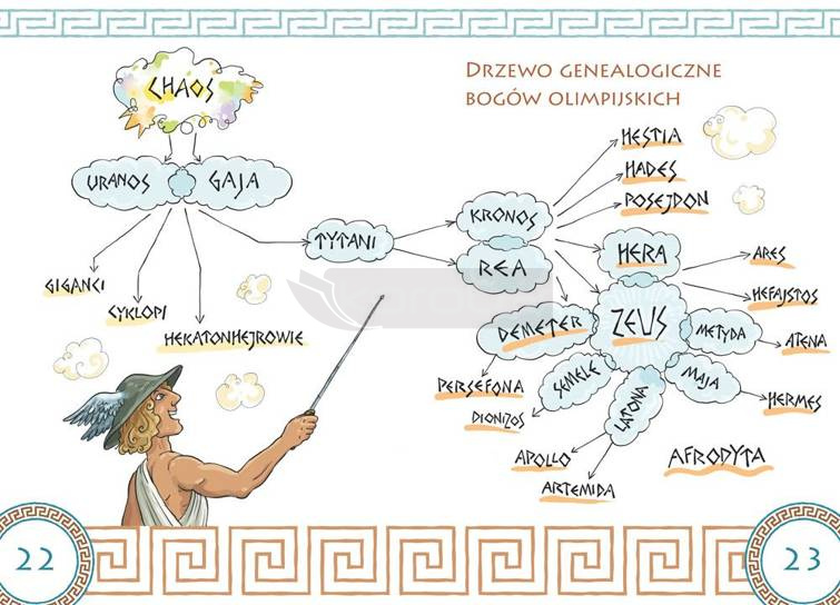 Mity greckie dla dzieci przybliżają najmłodszym czytelnikom świat greckich bogów, herosów, nimf, przedziwnych stworzeń i potworów. Dzięki tej książce dzieci mają szansę odbyć fascynującą podróż do starożytnych czasów, poznać panteon bogów greckich, zwiedzić Olimp, poznać historię Heraklesa, Tezeusza, śledzić tułaczkę Odyseusza. Napisana w przystępny sposób książka została wzbogacona licznymi ciekawostkami i informacjami o bogach, bohaterach, ich perypetiach oraz o związkach frazeologicznych związanych z mitologią.