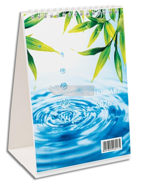 56 stron, jeden tydzień na jednej stronie, w dolnym rogu skrócony kalendarzyk miesiąca spirala biała, niebieska lub czerwona, podstawka o profilu trójkątnym, karton 350g/m2, jednostronnie bielony zapewnia stabilność, wytrzymałość, a także dużą estetykę, kod kreskowy na okładce