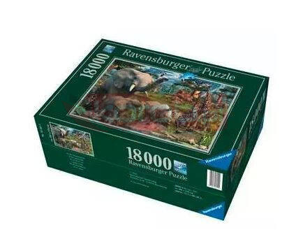 Te bogato ilustrowane puzzle składają się z 18 000 elementów tworzących wspaniałą scenerię z wieloma zwierzętami afrykańskimi.
