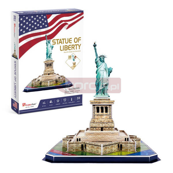 Opakowanie zawiera puzzle 3D, które umożliwiają złożenie modelu Statua Wolności.