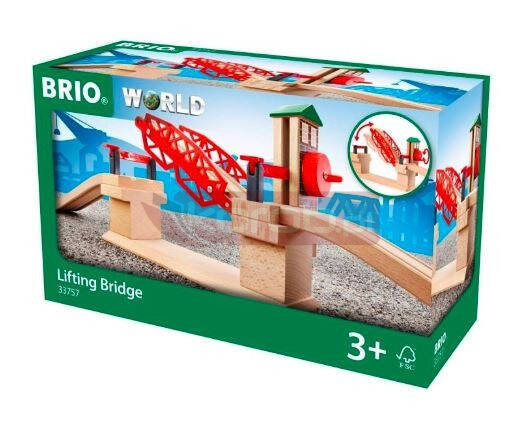 Most zwodzony to ciekawe uzupełnienie każdego zestawu kolejki drewnianej. Do mostu prowadzą dwa tory podjazdowe zakończone szlabanami. Na jednym końcu znajduje się drewniana wieżyczka, do której przymocowany jest kołowrotek połączony z mostem. Kręcenie w jedną bądź drugą stronę umożliwia podnoszenie i opuszczanie mostu. Most jest kompatybilny z innymi elementami Brio, za pomocą drewnianych torów łączymy zabawkę z inymi trasami kolejowymi.
