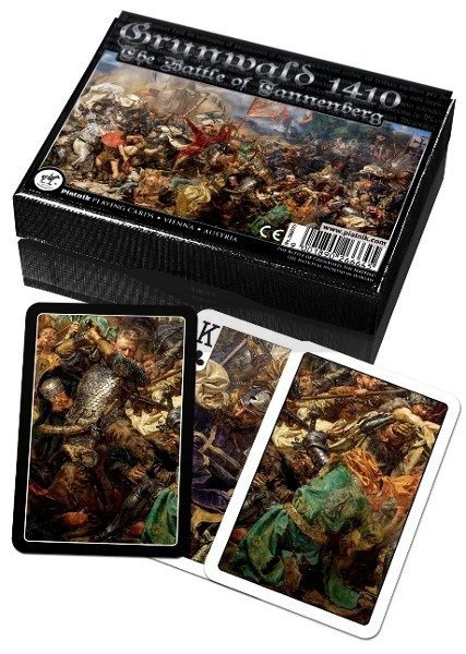 Karty wyprodukowane z okazji 600 rocznicy bitwy pod Grunwaldem. W komplecie 2 talie w eleganckim pudełku z charakterystyczną Piatnikowską poduszeczką. Na rewersach i figurach fragmenty obrazu Jana Matejki. Talie składają się z 55 plastikowanych kart o wymiarach 58 x 89 mm i gramaturze 310. Idealne zarówno do brydża, pokera, remika jak i innych gier.