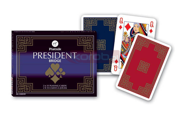 Najwyższej jakości klasyczne karty do gry Piatnika. W komplecie 2 talie, rewersy (koszulki) są symetryczne i wyraźnie różnią się od siebie, doskonałe zarówno dla wytrawnych graczy, jak i poczatkujących.