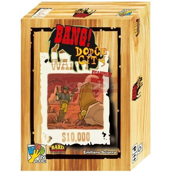 Ten zestaw zawiera rozszerzenie BANG! Dodge City, czyli nowe postacie, karty oraz role, dzięki którym grać można nawet w 8 osób! Dodge City: tłoczne, chaotyczne, żywe niebezpieczne miasto! Miejscowe saloony są legendarne, tak jak goście, którzy się w nich zatrzymują. Na ulicach pojawiają się bandyci zwabieni bogactwem miasta, a strzelaniny są w menu każdego dnia. Ochrona prawa i porządku to zadanie dla najtwardszych z szeryfów. Jak będzie? Dacie radę czy szykować wam miejsce na Boot Hill, na słynniejszym cmentarzu Dzikiego Zachodu? Dodge City jest rozszerzeniem do gry BANG!: do gry wymagana jest podstawowa wersja gry.