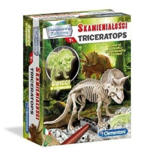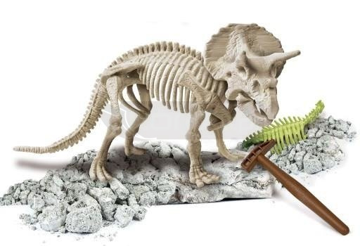 Cofnij się w przeszłość! Za pomocą narzędzi paleontologa będziesz mógł drążyć w bloku terenu i odnajdywać prastare skamieniałości. Złóż fosforyzujący szkielet i popatrz na niego w ciemności... będziesz zachwycony. Zestaw Archeologa zabierze cię w fascynująca podróż w przeszłość. Za pomocą młotka i dłuta drąż gipsowy blok i odkrywaj zakopane szczątki Triceratopsa.
