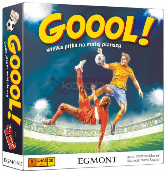 Gra "Goool!" ma średniej wielkości pudełko, zapewnia szybką rozgrywkę, a jej autorem jest Corné van Moorsel, który stworzył kilka różnych gier, gdzie zawodnicy toczą mecze piłki nożnej.