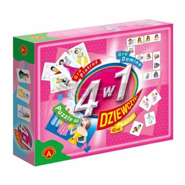 "4 w 1 - dziewczyny" to zestaw 3 różnych gier i 60 puzzli do układania.