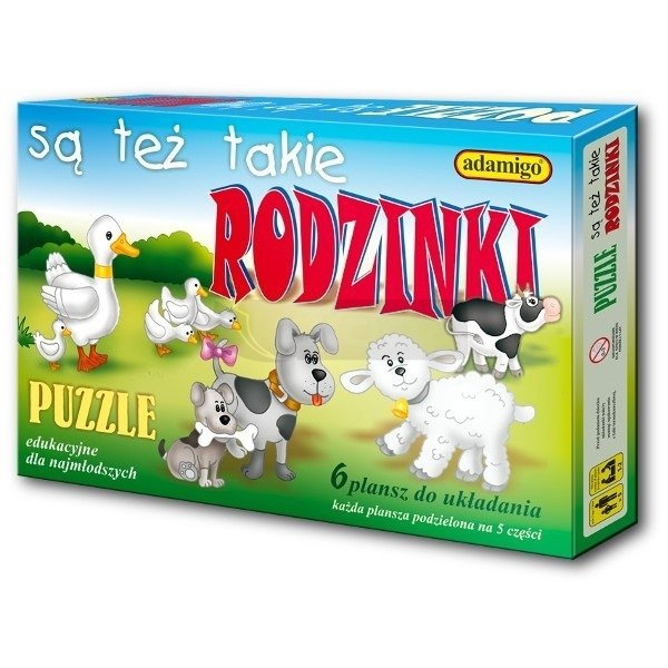 Są też takie rodzinki to edukacyjna gra puzzlowa, przeznaczona dla dzieci w wieku przedszkolnym, której celem jest zaznajomienie najmłodszych z charakterystycznymi zwierzętami, które występują na wsi i w gospodarstwie wiejskim. Gra oprócz walorów estetycznych skłania do myślenia i ćwiczy koncentrację. Puzzle składają się z sześciu 5elementowych plansz, których bogata kolorystyka dodatkowo zachęca do zabawy.