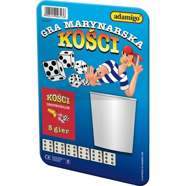 Gra marynarska kości to zestaw 5 kości wraz z kubeczkiem, a także z instrukcją zawierającą opis do pięciu gier.