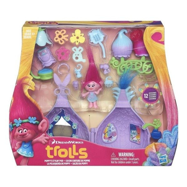 Zapraszamy na fryzjerską imprezę, podczas której Trolle wspólnie śpiewają, tańczą i przechwalają się swoimi wyjątkowymi fryzurami. Trolls Studio Stylizacji to idealne miejsce do zabawy rodem z filmu Trolle! W zestawie znajdziesz figurkę Poppy z akcesoriami.