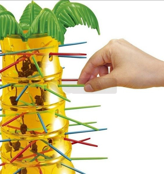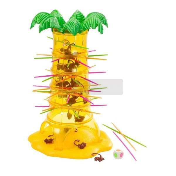 Spadające małpki to gra zręcznościowa dla całej rodziny! To wyjątkowa gra, w której o zwycięstwie nie decyduje szybkość, ale precyzja i skupienie, nie to, kto zbierze najwięcej małpek, ale komu uda się pozostawić ich najwięcej na drzewie. Gra rozwija zdolność koncentracji uwagi oraz sprawność manualną, uczy cierpliwości i działania z namysłem, przygotowując dzieci do nauki pisania oraz wykonywania bardziej wymagających zadań w szkole. Zawartość pudełka: 30 małpek 30 patyczków w różnych kolorach specjalna kostka do gry plastikowe drzewo z podstawką Zasady gry: Składamy drzewo oraz umieszczamy różnokolorowe patyczki w specjalnych otworach palmy. Małpki wrzucamy do środka drzewka. Gracze rzucają kostką do gry z kolorowymi polami. Kolor wylosowany wyznacza kolor patyczka, który gracz musi wyciągnąć. Cała sztuka polega na tym, aby przy tym nie spadła żadna małpka! Wygrywa ten z graczy, który zbierze najmniejszą ilość małpek. Spadające małpki to gra przeznaczona dla dzieci powyżej 5 roku życia. Liczba graczy: 2-4.