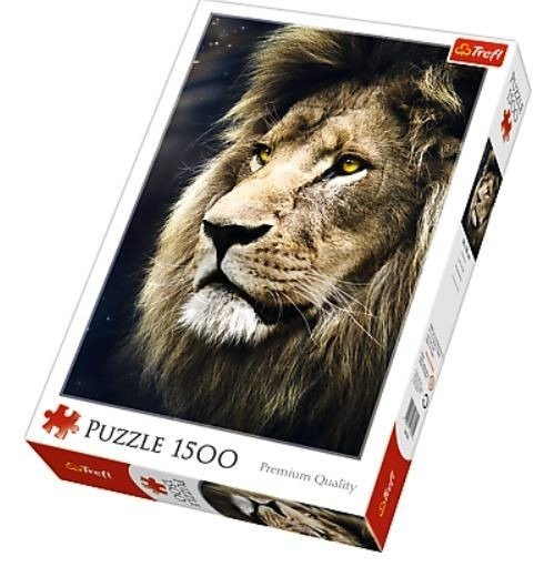 Portret lwa Puzzle 1500 elementów z portretem lwa. Po ułożeniu powstanie obrazek o wymiarach 85x58 cm. Wysoką jakość, nasycenie kolorów i bezpieczeństwo układania zapewnia kalandrowany papier odbijający światło, pokryty ekologicznymi farbami spożywczymi.