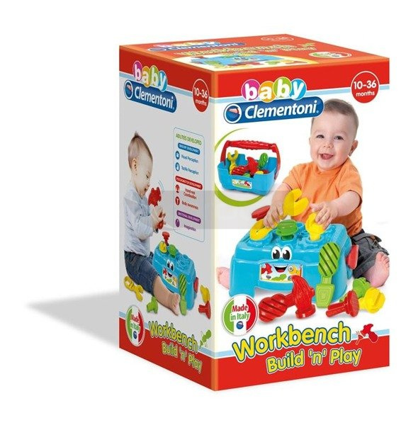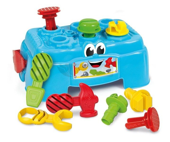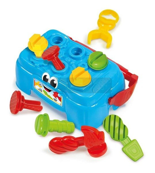W zestawie stolik małego majsterkowicza jest również praktyczna skrzynka narzędziowa, którą dziecko może zabrać ze sobą.