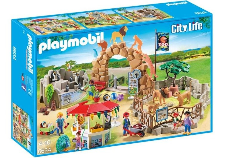 Z zagrodą dla lwa, basenem i zjeżdżalnią dla pingwinów oraz jaskinią dla świstaków. Zegar z ruchomymi wskazówkami pokazuje porę karmienia zwierząt. w połączeniu z: 6423 Animal Enclosure