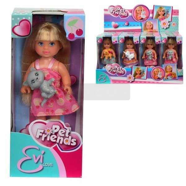 Laleczka Evi w letniej sukience z pieskiem, kotkiem albo króliczkiem.