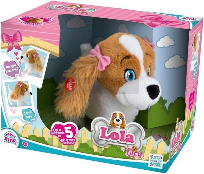 Lola to uroczy szczeniak-młodsza siostra pieska Lucy.Reaguje na 5 różnych komend. Szczeka, daje całuska, cieszy się. przychodzi na Twoje zawołanie... a dodatkowo razem ze swoją siostrą Lucy odpowiada na 5 innych komend!Zasilanie: 3xLR03 (AAA).