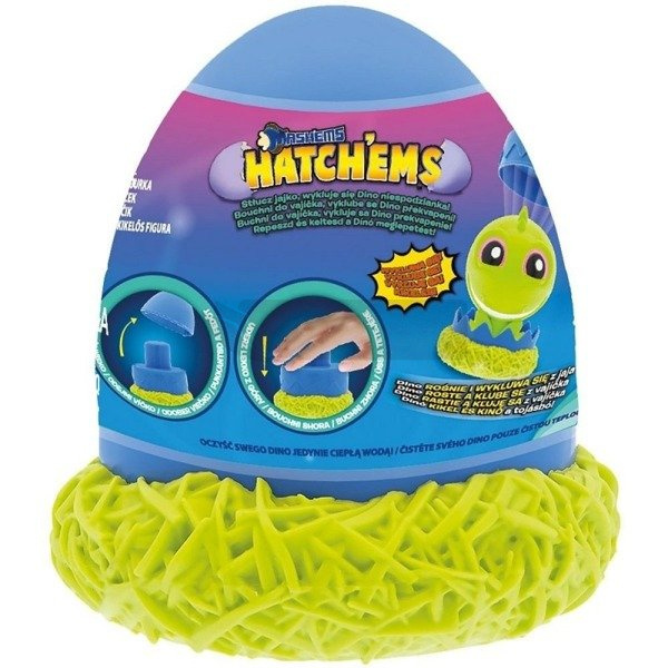 Zdejmij wieko opakowania, uderz lekko z góry i podziwiaj jak Dino wykluwa się i rośnie. Po uderzeniu figurka sama się powiększa i wystaje z kapsuły. Figurka uzyskuje właściwy rozmiar do 24h. Oczyść swego Dino jedynie ciepłą wodą.