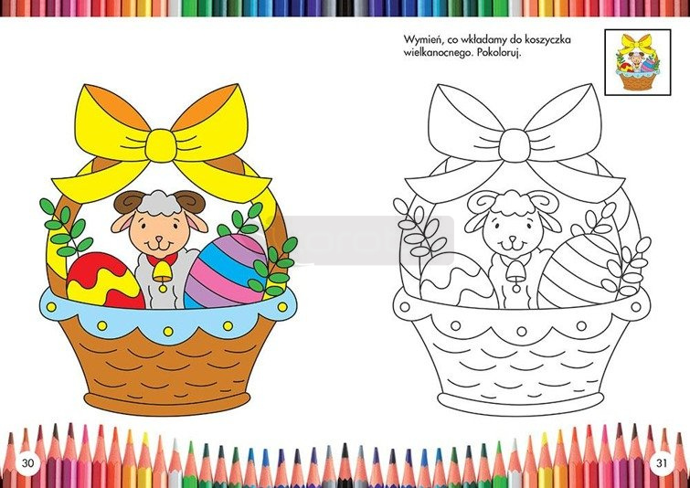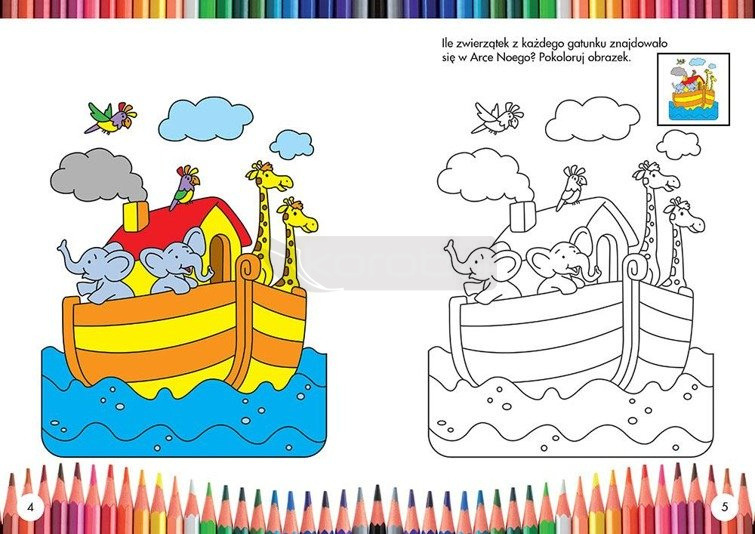 Wszystkie ilustracje to nie tylko wesoła zabawa przy kolorowaniu, ale też ciekawy początek rozmów z maluchem o Bogu i wierze. Rysunkom towarzyszą całostronicowe, barwne wzory, dzięki którym każde dziecko będzie dokładnie wiedziało, jak pokolorować obrazek.