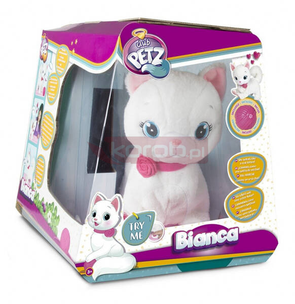 Zachowuje się jak prawdziwy kotek gdy go wołasz, odwraca głowę, łasi się podczas głaskania po plecach, bawiąc się swoją piłeczką mruczy piosenkę
