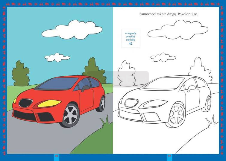 Ogromną atrakcją są dołączone do książki naklejki! Przedstawiają one najnowocześniejsze, najszybsze samochody świata. Każda naklejka ma numer, odpowiadający numerowi wpisanemu na stronach książeczki w miejscu przeznaczonym na naklejkę. Odnajdywanie właściwego samochodu to fantastyczna zabawa!