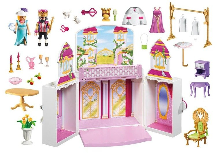Zestaw z serii Princess to propozycja zabawy dla małych księżniczek. Zamek Królewski to uroczy zestaw w wygodnym do przenoszenia i przechowywania kuferku zamykanym na klucz. Po otwarciu pokazuje się nam wspaniała sceneria zamku. Kuferek posiada wygodną rączkę do przenoszenia. Możesz go zabrać, gdzie tylko chcesz.