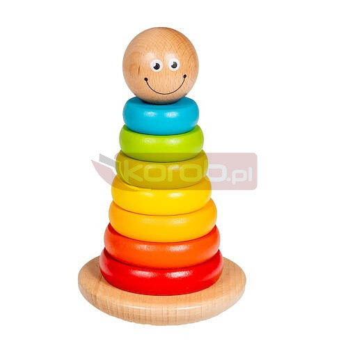 Drewniana piramidka składająca się z 7 kolorowych krążków.