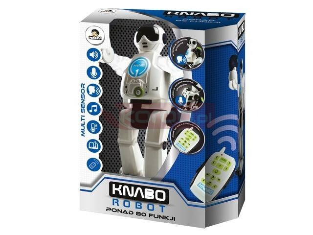 Robot KNABO to interaktywny kumpel mówiący po polsku.Reaguje na komendy głosowe, śpiewa, tańczy, podaje temperaturę otoczenia. Gdy nie rozumie, mówi nam o tym. Sterowany pilotem. Ładowarka w zestawie.