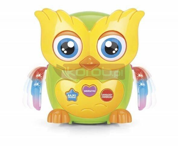 Mądra sówka (wysokość 23 cm) bardzo wiele potrafi! Śpiewa 6 piosenek, opowiada 2 bajki, recytuje 11 wierszyków i naśladuje odgłosy aż 24 zwierzaków!