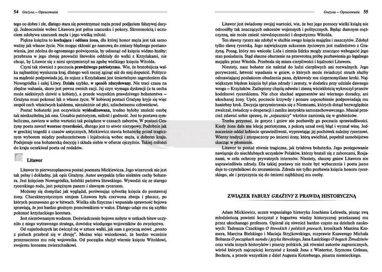 Wydanie Grażyny kompletne bez skrótów i cięć w treści. W tym wydaniu znajdziesz odpowiedzi na pytania z podręcznika - „pewniak na teście”, czyli wskazanie zagadnień, które zwykle pojawiają się w pytaniach z danej lektury we wszelkich testach sprawdzających wiedzę, a także w podręcznikach i na klasówkach. Zawiera bardzo szczegółowe streszczenie oraz drugie skrócone, ułatwiające szybkie przygotowanie się przed lekcją. Opracowanie zawiera plan wydarzeń, wnikliwie wyjaśnioną problematykę oraz szerokie charakterystyki bohaterów.