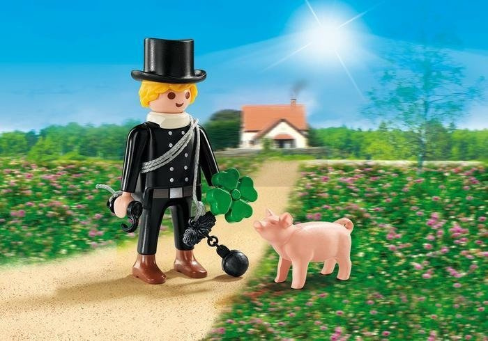 Zestaw zawiera: 1 kominiarza, 1 świnię, 1 koniczynę, 1 czapeczka, 1 kominiarz. Zestaw przeznaczony jest dla dzieci z przedziału wiekowego powyżej 4 lat.