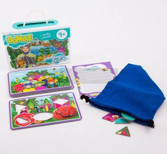 Zestaw ilustracji przedstawiających Domisiową Krainę stanowi propozycje ćwiczeń manualnych oraz analizy i syntezy wzrokowej dla dzieci w wieku przedszkolnym. Gra polega na tym, ze dziecko stara się wylosować z woreczka właściwy element pasujący do jego obrazka. W ten sposób dziecko uczy się rozpoznawania i nazywania kształtów. Przez dobieranie do całości wyodrębnionych elementów ilustracji, ćwiczy koncentracje oraz rozwija myślenie analityczne.