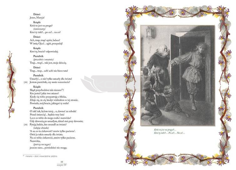 Dziady Adama Mickiewicza to jeden z najbardziej znanych utworów w literaturze polskiej i jednocześnie jedno z dzieł najbardziej reprezentatywnych dla polskiego romantyzmu. Od lat regularnie wystawiane na deskach teatrów całej Polski, czytane przez kolejne pokolenia czytelników, inspirujące twórców i niosące wciąż aktualne treści. Każda z części utworu porusza inne tematy, ale razem tworzą spójną wizję świata rządzonego przez niezmienne prawa boskiej sprawiedliwości i miłosierdzia.