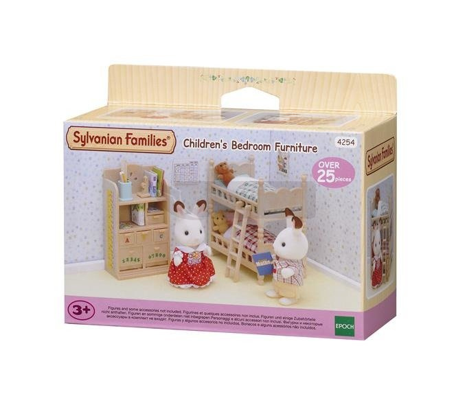 Dzięki 2 łóżkom, wyglądającym na wykonane z drewna bukowego, które można ustawić jedno na drugim, tworząc piętrowe łóżko, oraz łączącej je drabince, ten zestaw mebli do sypialni dziecięcej jest idealny do wspólnego pokoju brata i siostry. Dzięki dwóm dopasowanym pluszowym zabawkom, brązowemu misiowi - chłopcu i beżowemu misiowi - dziewczynce, a także pościeli w piękną zielono-czerwoną szachownicę, ten zestaw do sypialni jest idealny dla dzieci, które dopiero zaczynają dorastać. Poza szafką z szufladami, są tu jeszcze 2 książki i aż 10 dodatkowych akcesoriów, w tym kalendarz i notatnik, linijka, żółty ołówek, różowy ołówek, stojak na przybory do pisania i podpórka do książek (mieszkańcy Sylvanii po prostu kochają materiały piśmienne!).